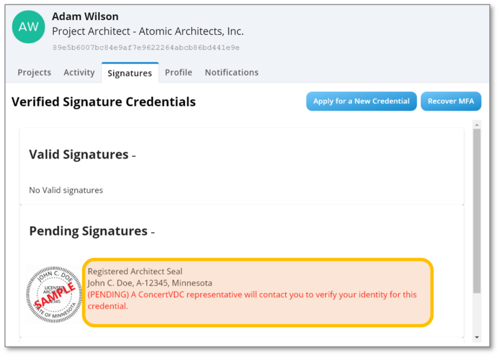 Establishing a credential for digital signatures on Concert not difficult but does require some pre-requisite work. In order to validate your identity and provide proper security you will need to prepare appropriate documentation and set up a Multi-Factor Authenticator app on your smartphone. The Multi- Factor Authenticator will be required every time you sign a Collection on Concert.