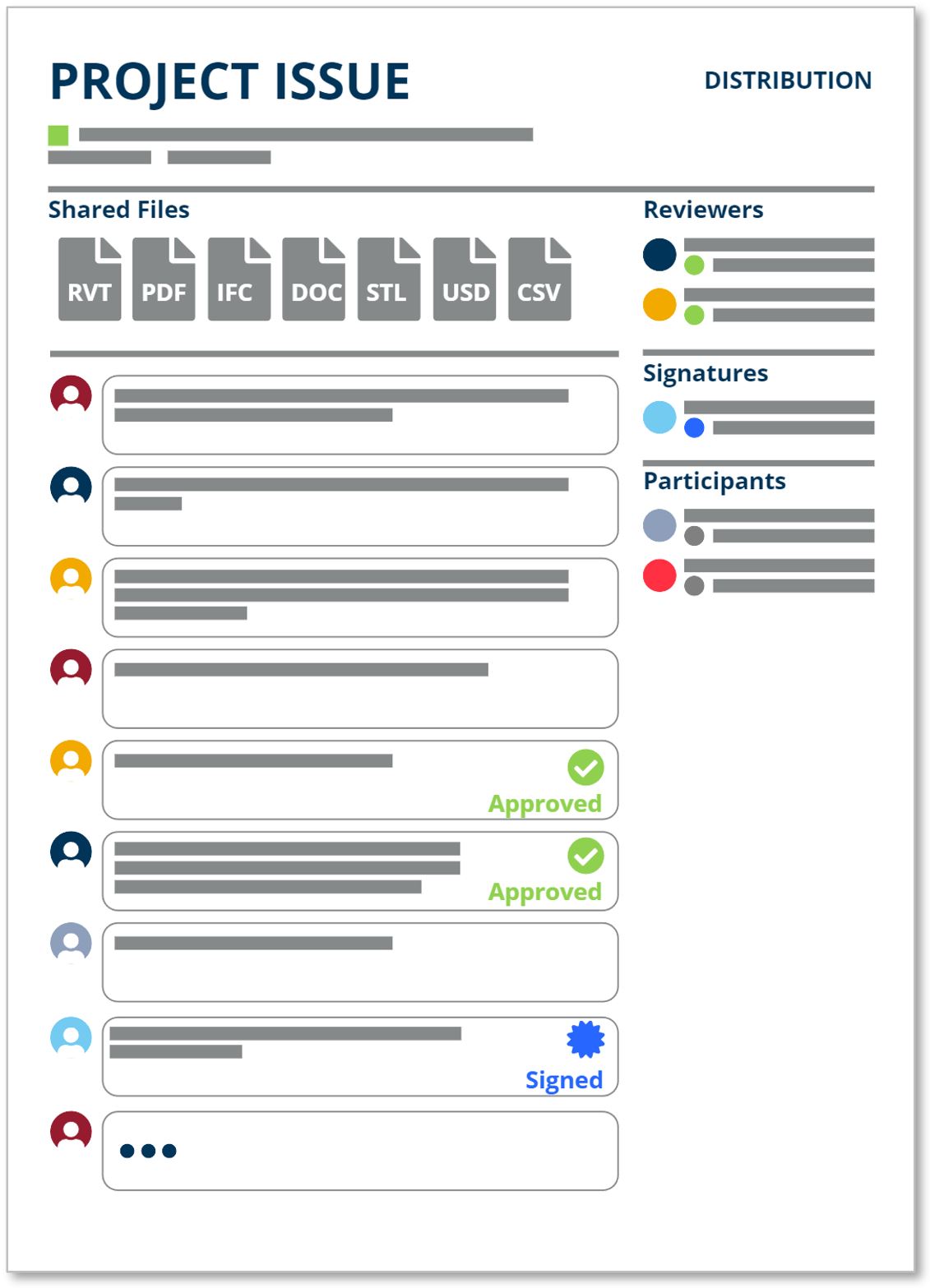 With ISSUES, project teams can leverage structured workflows leveraging Collections and enhancing file sharing capabilities. Users can distribute Collections, dynamically manage recipients, request reviews and approvals, and securely apply digital signatures, all in an efficient and streamlined manner.